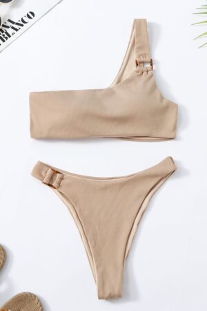 - Módní dvoudílné plavky na jedno rameno.