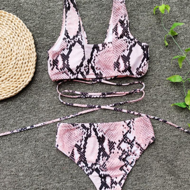 - Dvoudílné plavky se vzorem hadí kůže.