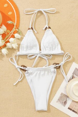 - Módní dvoudílné plavky s dekorativními kroužky.