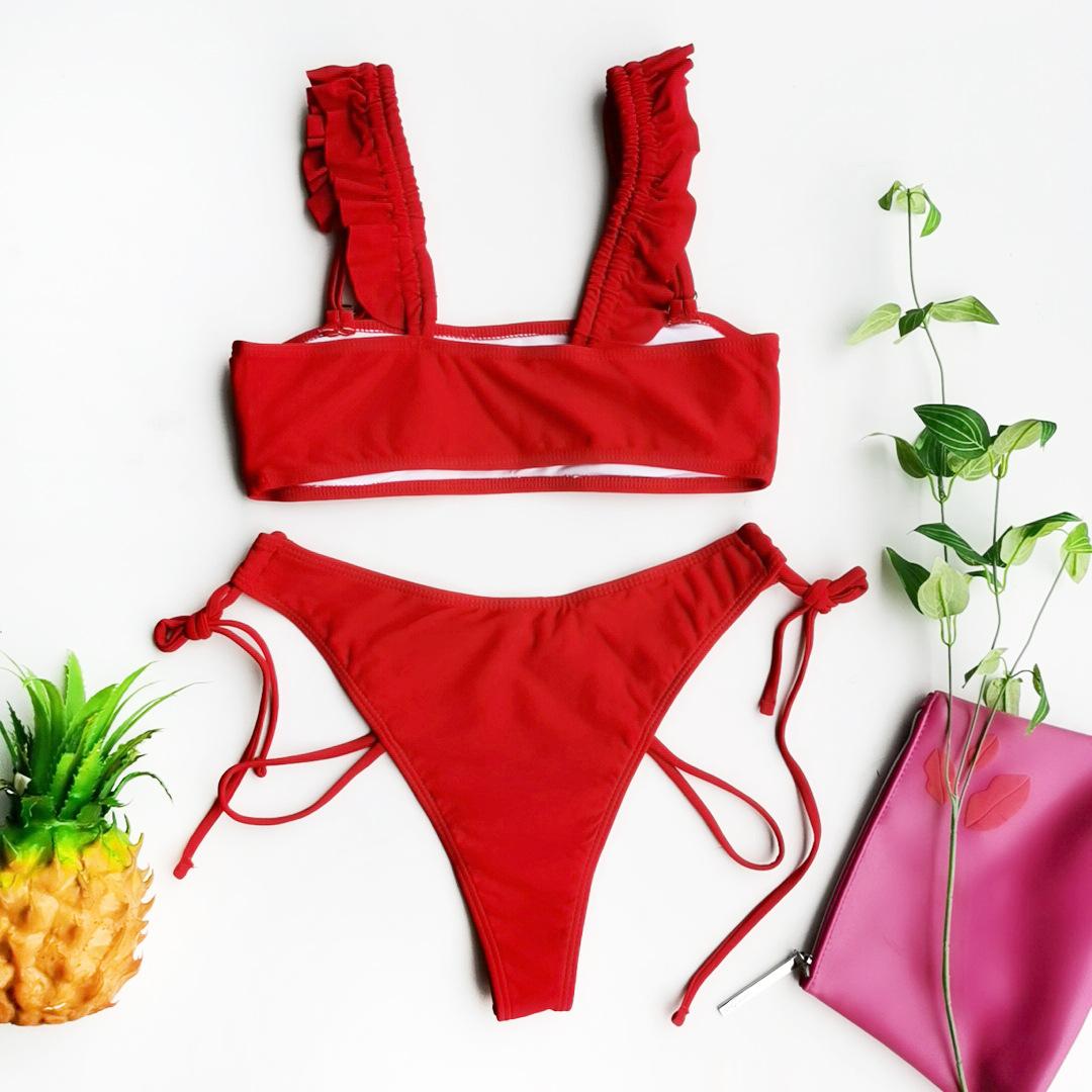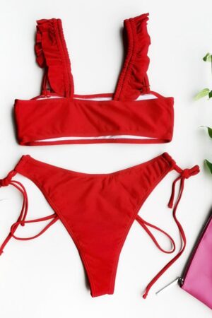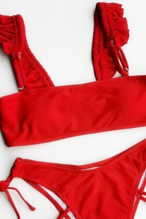 • Šarmantní dvoudílné plavky v červené barvě.
