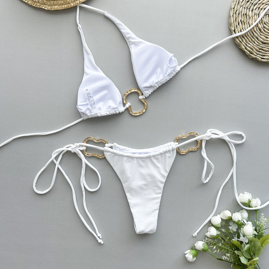 - Kompletní moderní dvoudílné plavky se zlatými detaily.