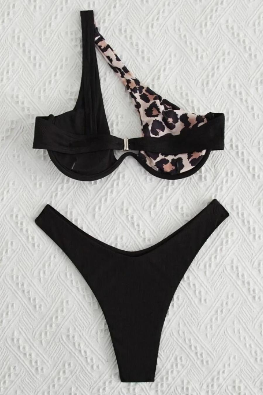 - Modni dvodijelni kupaći kostim s uzorkom na jedno rame.